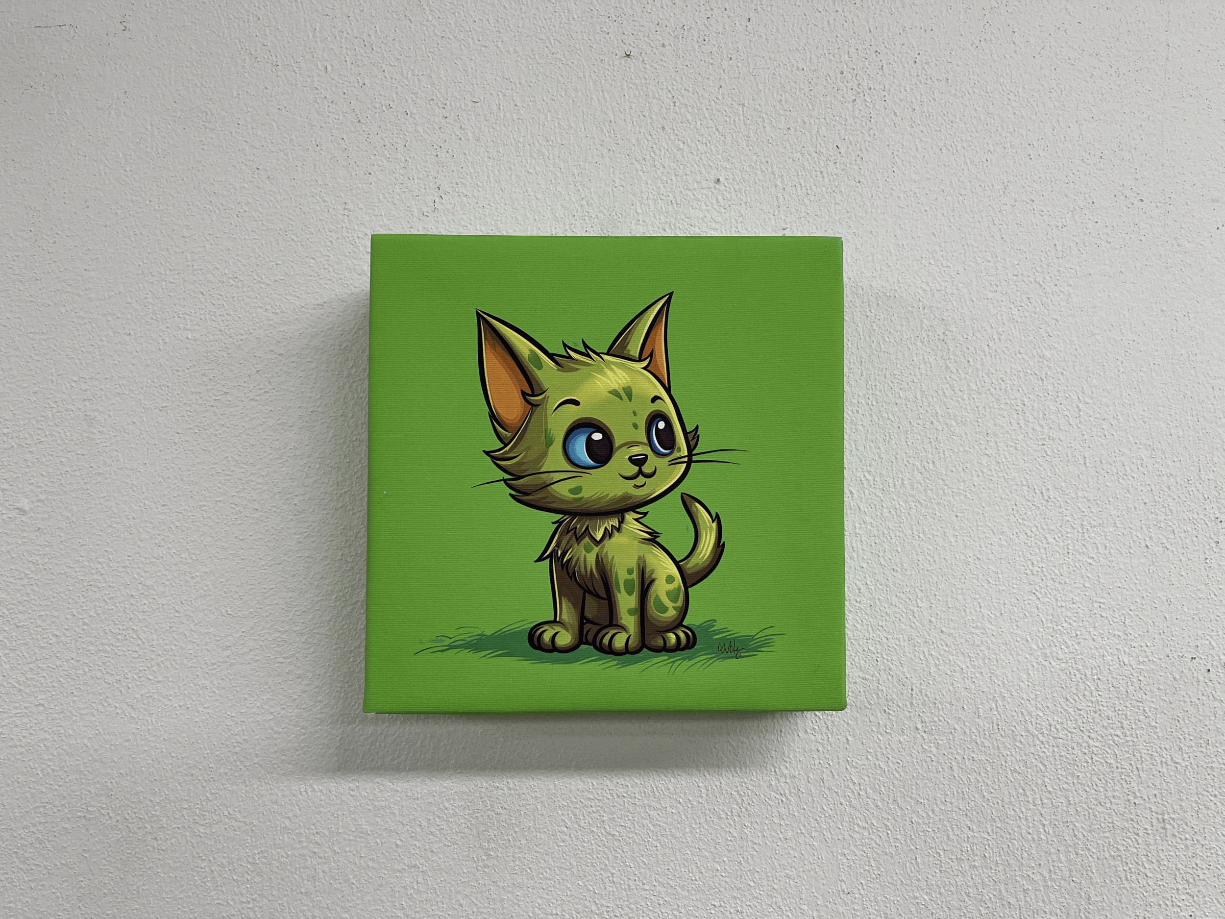 Image 1 of 2 Image 2 of 2 KD05 $150.00 Cartoon kitten with lime green background on stretched canvas. Set 5 of 5.Dimensions: 8 1/8 x 8 1/8Tags: Animal, pet, kids Add To Cart Added! Cartoon kitten with lime green background on stretched canvas. Set 5 of 5.Dimensions: 8 1/8 x 8 1/8Tags: Animal, pet, kids